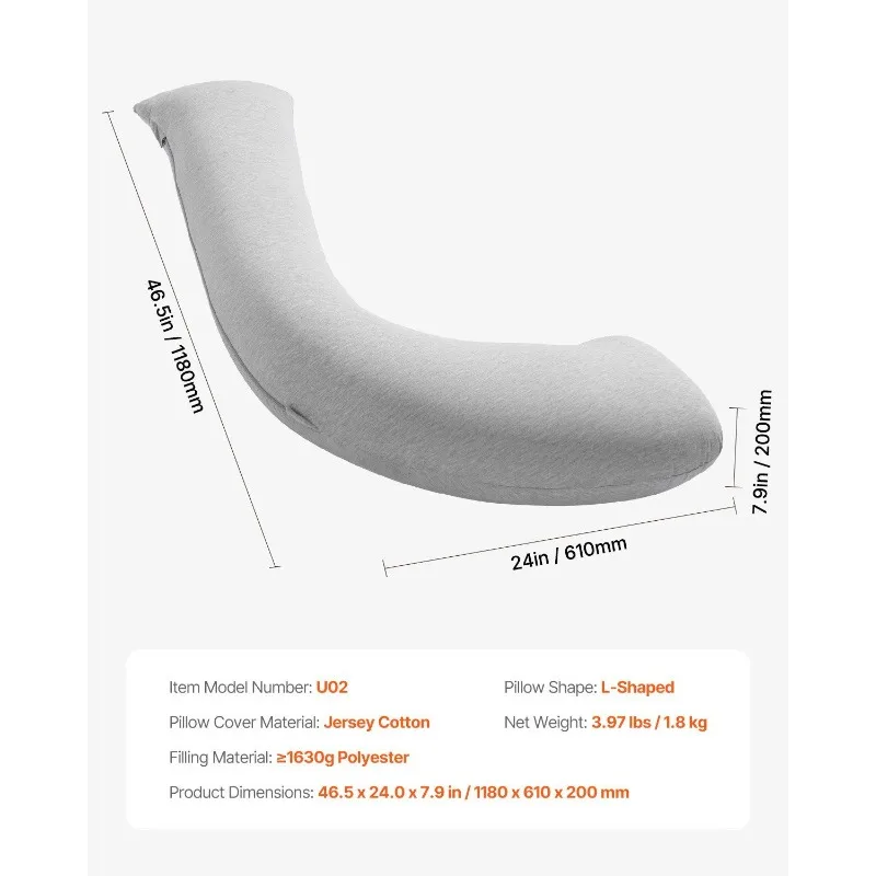 Made with soft, breathable fabric, the pillow ensures optimal airflow and a cozy feel, keeping you comfortable through every season. The L-shaped design fits naturally along the body, making it ideal for side sleeping while offering targeted support where it’s needed most.