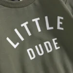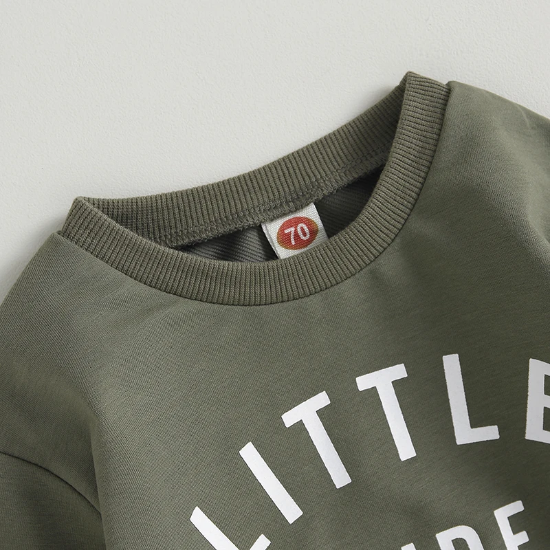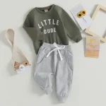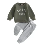 The set features a long-sleeve sweatshirt with a fun letter print, paired with matching pants for a coordinated and modern look. Made from soft, breathable fabric, it provides gentle warmth while remaining comfortable against your toddler’s skin.