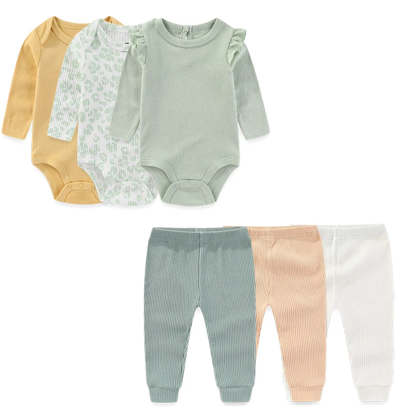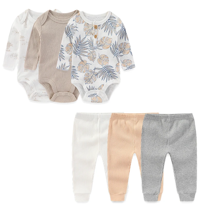 Provide everyday comfort and convenience with the Unisex Baby Clothing Set, a practical 6-pack outfit collection designed for newborns and infants. Perfect for daily wear, this coordinated set includes soft cotton long-sleeve bodysuits and matching pants, suitable for both baby boys and girls.