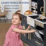 Perfect as a birthday, holiday, or special-occasion gift, this wooden kitchen set combines educational value with timeless design, making it a standout addition to any playroom.