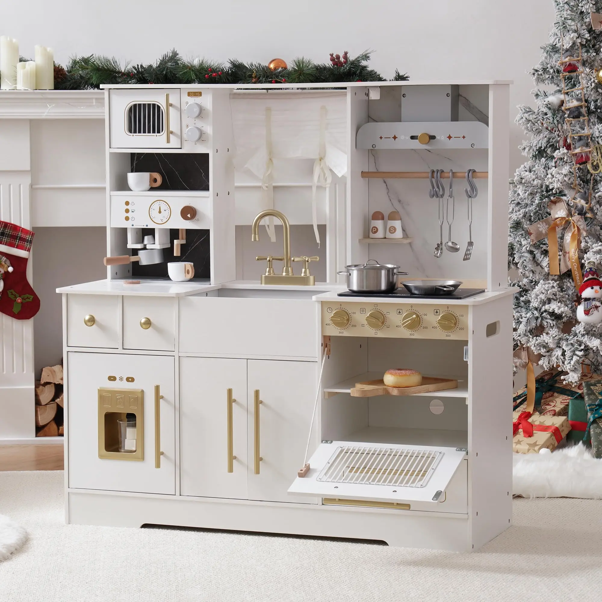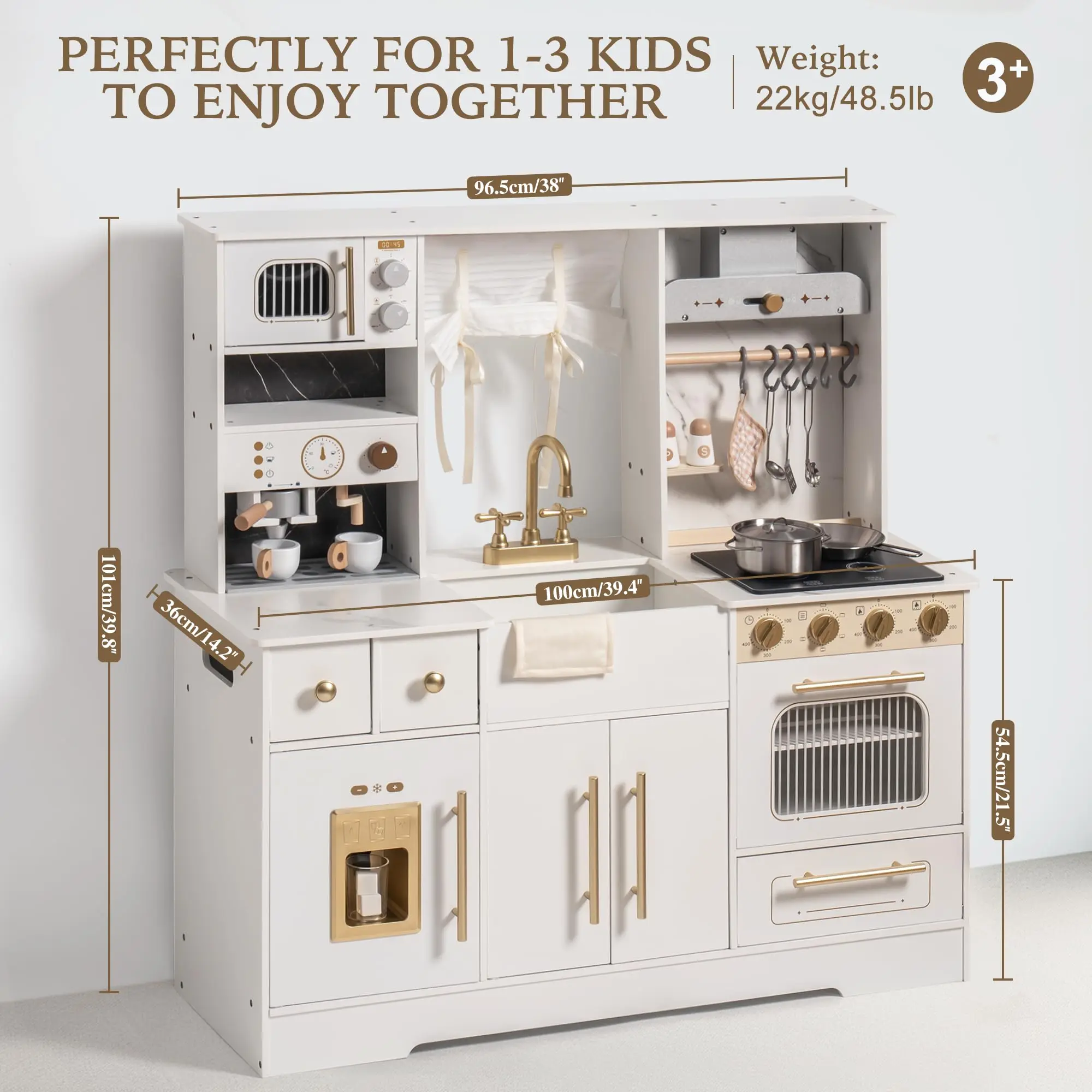Featuring realistic details such as a working-style ice maker and coffee machine, the kitchen set brings pretend play to life and encourages interactive storytelling. Children can simulate real kitchen activities, helping to develop creativity, hand-eye coordination, social skills, and problem-solving through imaginative play.
